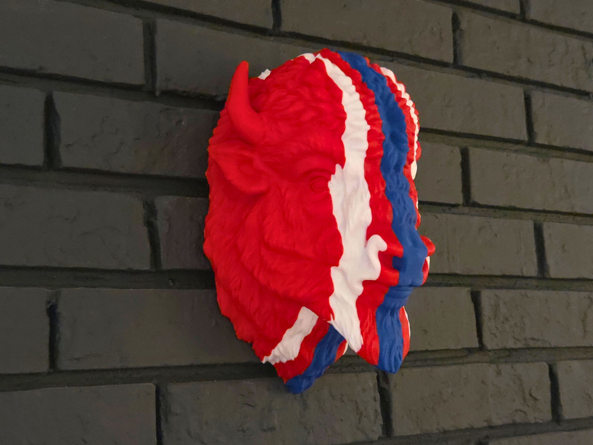 Love 'em or hate 'em the red helmets are back for one last glorious ride and we've reverse engineered our popular Wall Mounted Bison heads to rock the same look! (WE LOVE THE RED HELMETS.) The ultimate gift for the ultimate fan.